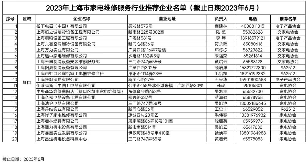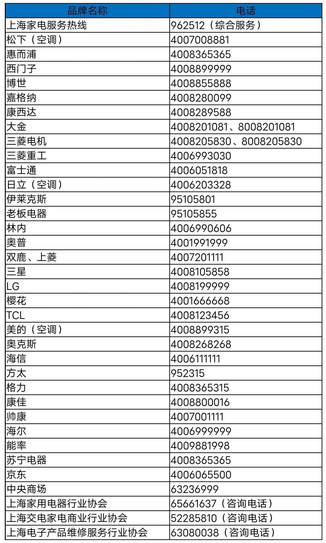 Citizens can find the official after-sales phone number in the product manual or on the fuselage. In addition, on June 27th, the Municipal Commission of Commerce also published the List of National Unified Service Phones for Major Home Appliances Brands and the List of Recommended Enterprises in the Home Appliance Maintenance Service Industry in Shanghai in 2023, so it is more reassuring to choose the official telephone numbers and regular enterprises in the form.